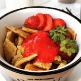 Praženec iz ovsene moke z vročimi jagodami
