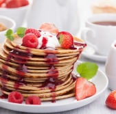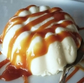 Puding s kokosom in vrtnicami ter prelivom iz ribezovega sirupa