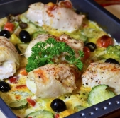 Piščančje roladice z zelenjavno posteljico