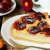 Limonov cheesecake s pečenimi slivami in robidnicami