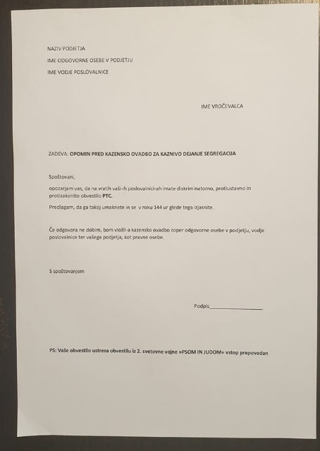 NAJPREJ OPOMIN IN ČE NADALJUJEJO, POTEM OVADBA. PRILAGAM VZOREC