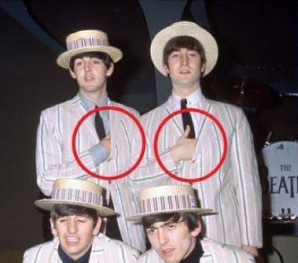 Člana skupine Beatles Paul McCartney in John Lennon prikazujeta masonsko skrito kretnjo z roko.