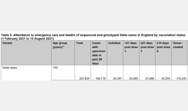 "... Javno zdravje Anglije je redno objavljalo poročilo o variantah Covid-19 v Združenem kraljestvu, njihovo zadnje poročilo pa je bilo objavljeno 20. avgusta in zajema podatke o primerih, hospitalizacijah in smrti zaradi variante Delta Covid-19 od 1. februarja do 15. avgusta 2021. ..." ...