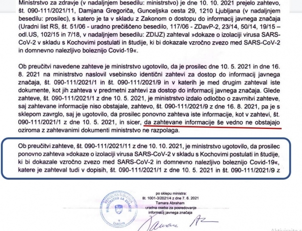 S tem odgovorom ministerstva je treba it na sodišče da ta pozove da dajo dokaze in odgovore. Če dokazov ni gre za lažno pandemijo in je treba Kovid prevaro ukinat.