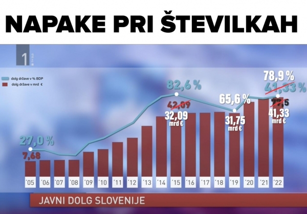 V včerajšnjem Dnevniku na RTV Slovenija smo zaznali, kar veliko napak v grafiki o javnem dolgu in zadolževanju države