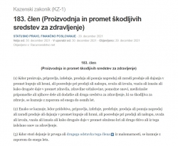 NEWSEXCHANGE SI | Do 8 let zapora za vse vpletene | 183. člen (Proizvodnja in promet škodljivih sredstev za zdravljenje) ...| | | |