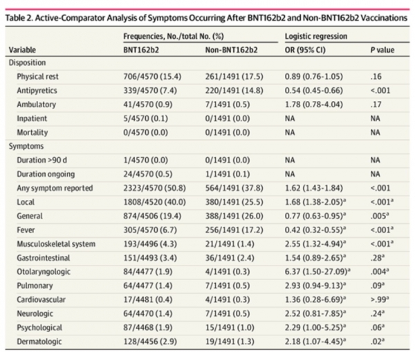 Študija, objavljena v JAMA, je vključa 7806 otrok, starih pet let ali manj, ki so jih spremljali v povprečju 91,4 dni po prvem cepljenju s Pfizerjem. Šlo je za retrospektivno kohortno študijo, izvedeno kot verodostojno spletno anketo (stopnja odziva 41,1 %) spomladi 2022, ki je vključa starše ali skrbnike, ki so prijavili otroke za cepljenje proti SARS-CoV-2 v ambulantnih ustanovah v Nemčiji. Primerjal je neželene učinke s stranskimi učinki istih otrok z drugimi cepljenji, da bi nadzoroval prekomerno poročanje.