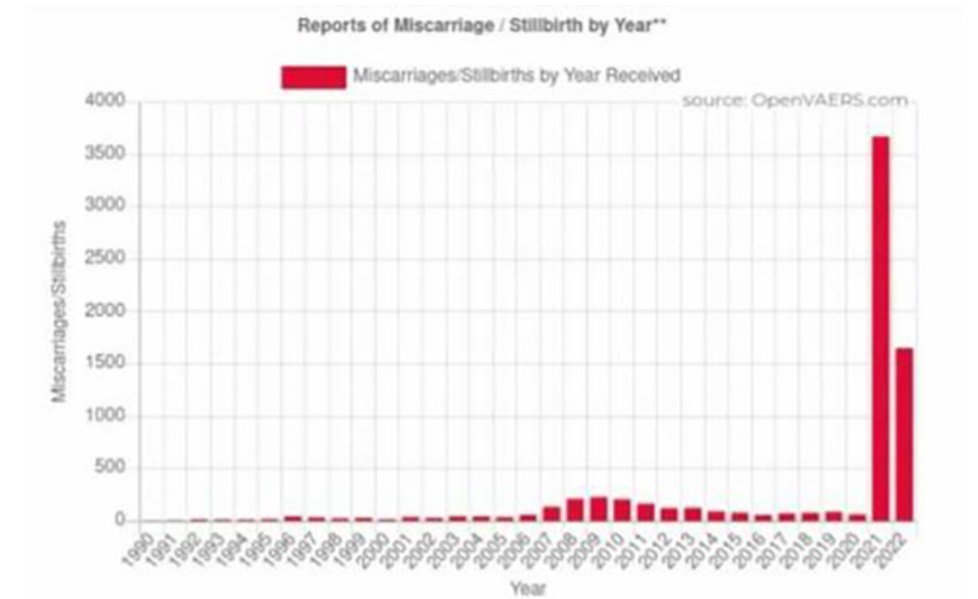 Sistem poročanja o neželenih dogodkih pri cepljenju (VAERS) je eksplodiral s poročili o spontanih splavih in mrtvorojenosti, kar je 4070 % več kot povprečje preteklih let. Program "cepiva" proti covidu-19 bi morali ustaviti, ko so v kliničnih preskušanjih poročali o prvih znakih njegovega neuspeha in uničenja.