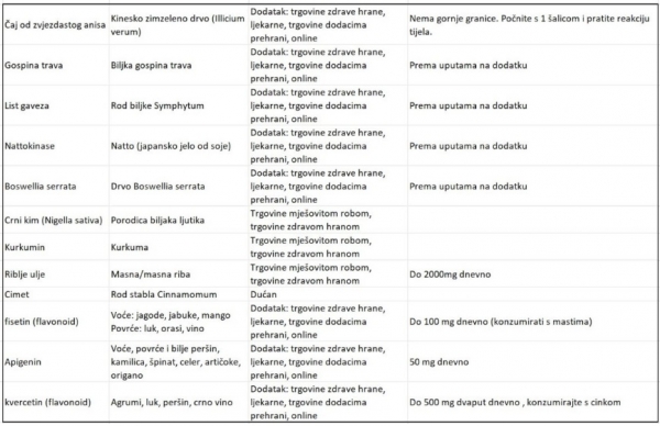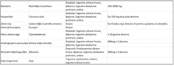 Tabela 1. Zdravila in dodatki, ki lahko pridejo v poštev (hrvaški jezik):