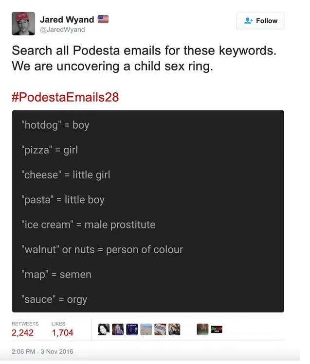Leta 2016 smo ekskluzivno objavili zgodbo o tem, kako so bile pedofilske kode uporabljene v izmenjavi e-pošte, ki jo je pricurljal WikiLeaks med Hillary Clinton in vodjo njene kampanje Johnom Podesto.