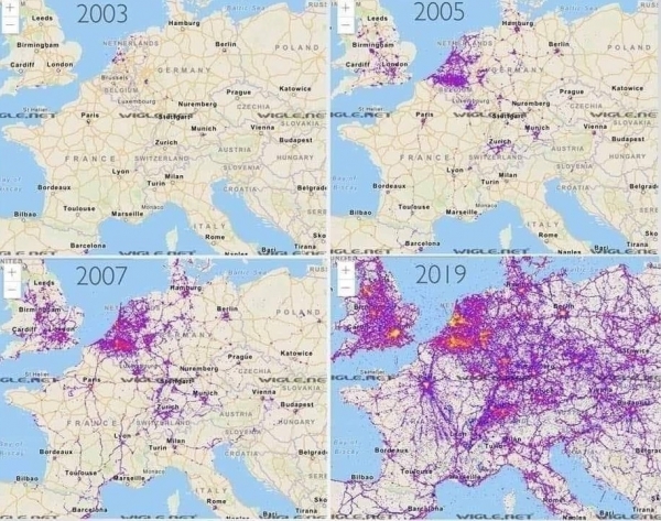 Eksponentna rast RF brezžičnega sevanja v 21. stoletju v Evropi