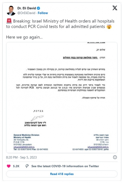 Opozarja, da v tej fazi ni sprememb navodil za javnost, in dodaja, da nenehno spremlja trende bolezni in različice korona virusa v Izraelu in po svetu.