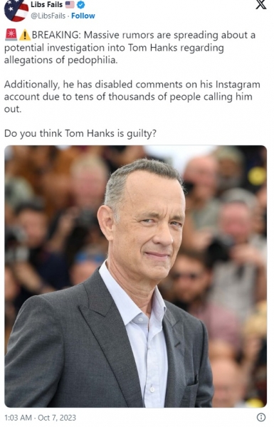 Hollywoodski A-lister Tom Hanks je onemogočil komentarje na svoji priljubljeni strani na Instagramu, potem ko ga je na desettisoče ljudi obtožilo domnevnih zločinov s spolnostjo otrok in zahto takojšnjo preiskavo njegovih zločinov nad otroki.