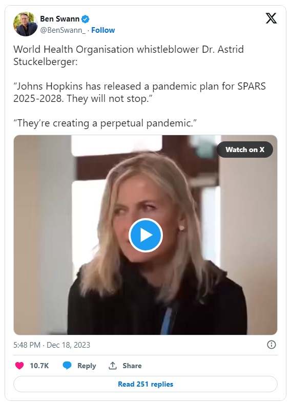 Žvižgačica iz WHO dr. Astrid Stuckelberger opozarja, da svetovna elita pripravja TRAJNO pandemijo
