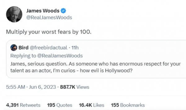 Kot je rekel hollywoodski veteran James Woods , je Hollywood "stokrat bolj zloben" od vaših najhujših strahov.