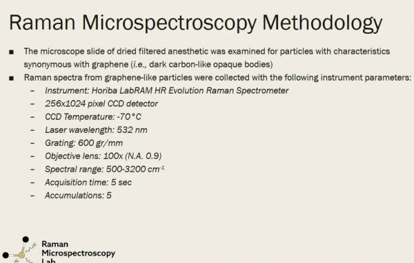 dr. Lundstrom, družinski zobozdravnik, je lahko izvedel analizo anestetikov na Univerzi Boulder Colorado, ki je pokazala prisotnost grafena. Rezultate svoje analize je objavil na spletni strani, da bi dobil odgovore. Neodvisno od dr. Lundstroma so analizo opravili tudi dr. Kernan, dr. Clifford Carnicom in dr. Ana Maria Mihalceaja. Tukaj so njihove analize.