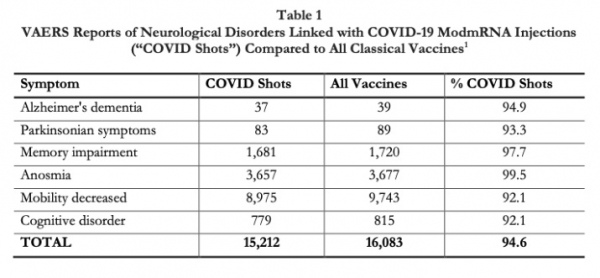 „"Nevrološka stanja in zapleti, povezani z injekcijami modmRNA, so pogosto opisani kot 'redki' in tipično blagi, pa tudi kot kratkotrajni in samoomejujoči," je študija navedla v razdelku Neželeni dogodki #2. "Vendar pa se je z nenehno distribucijo injekcij po vsem svetu nabralo veliko več poročil o primerih in neželeni dogodki po injiciranju ne morejo več veljati za "redke". Ti dogodki vključujejo primere encefalitisa, drugih encefalopatij, meningitisa, mielitisa, motenj avtoimunskega živčnega sistema, cerebrovaskularnih dogodkov, paralize obraza in številnih drugih nevropatij (Tondo et al.., 2022).“