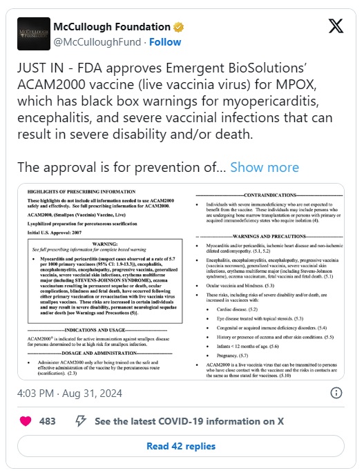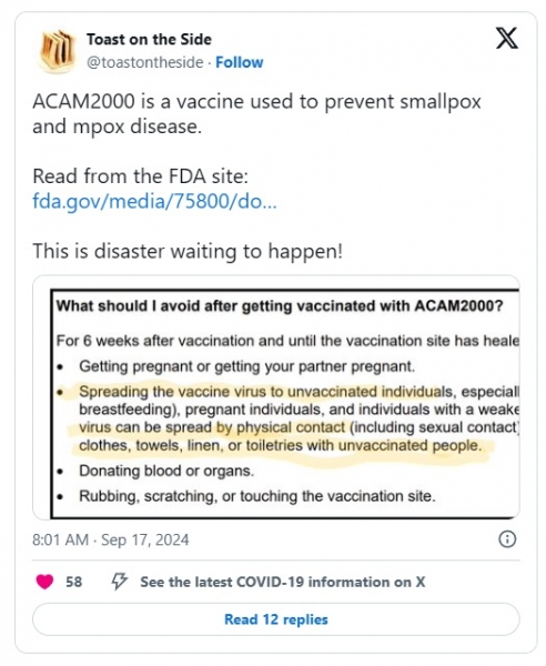 NEWSEXCHANGE SI | FDA opozarja na cepivo ACAM2000 Mpox, ki ogroža celo necepljene ljudi ...| | | |