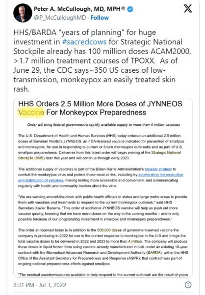 Kritiki trdijo, da odobritev in uporaba takšnega cepiva predstavlja nevarno igro z javnim zdravjem. Opozarjajo, da lahko morebitna tveganja daleč odtehtajo zaznane koristi, zlasti glede na razmeroma nizko razširjenost Mpox v splošni populaciji. Odkritje osvetljuje tudi pogosto zamegljen svet razvoja in odobritve cepiv. Kako je lahko cepivo s tako resnimi varnostnimi težavami sploh odobreno za nujno uporabo? Kakšno vlogo so imeli pri tej odločitvi ekonomski interesi?