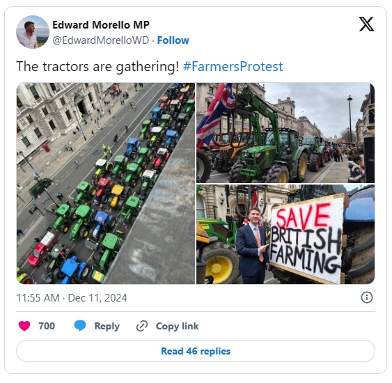 Na tisoče kmetov je v sredo s svojimi traktorji blokiralo ulice Londona. Britanski kmetje protestirajo proti kontroverznemu predlogu uvedbe davka na dediščino kmetijskih zemljišč, saj se bojijo za svoje preživetje.