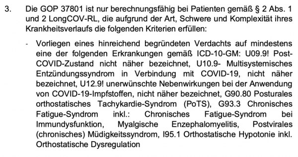 Zvezni skupni odbor (G-BA) je s tako imenovanimi smernicami LongCOVID (LongCOV-RL) predpisal, da se pritožbe po cepljenju proti COVID-19 – »post-vakcinacijskem sindromu« – dajo v isti predal kot Long COVID: