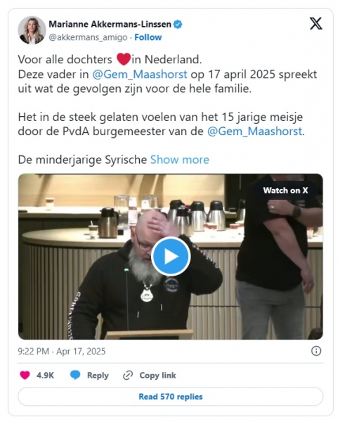 Ali je pomembno, od kod prihaja kriminalni prosilec za azil? Resnična žrtev je prebivalec vašega Maashorsta, župan. To je pomembno. Moja hči je bila posiljena. To je pomembno.”