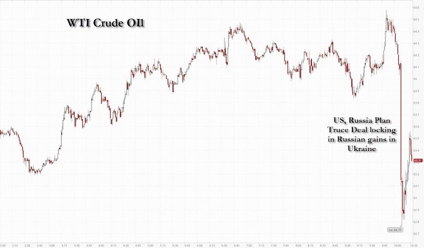 (Opomba: cena nafte je dejansko močno padla kmalu po objavi, da bo Rusija v okviru sporazuma ustavila ofenzivo v regijah Herson in Zaporiška v Ukrajini vzdolž sedanjih frontnih črt, vendar Armstrong takrat ni mogel vedeti za sporazum – glej spodnji grafikon).