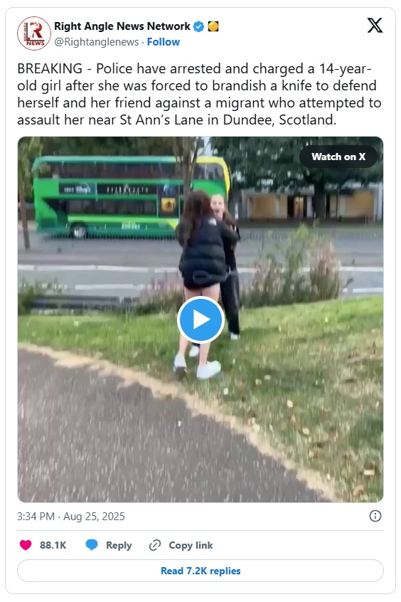 Če bi bil napadalec beli Škot, bi dekle verjetno razglasili za junakinjo. Namesto tega se sooča z morebitnim pregonom. In v tem se skriva dokaz, da množično priseljevanje ni humanitarna misija – temveč zlonamerna agenda.