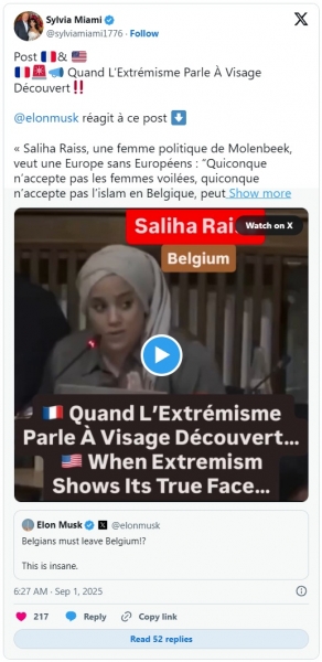 Saliha Rais, svetnica socialdemokratske stranke Vooruit, je v Belgiji povzročila vihar, potem ko je v videoposnetku, ki je krožil po družbenih omrežjih, kritikom njene naglavne rute naročila, naj "zapustijo državo".