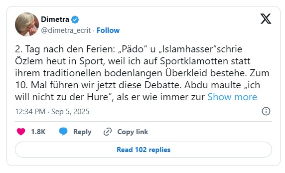 Düsseldorf (Severno Porenje-Vestfalija): Vsakodnevni prepir med otroki se spremeni v nočno moro. Oče vdre v mestni vrtec in zagrozi vzgojiteljicam: »Iztaknil vam bom oči. Alah vam bo sodil.«