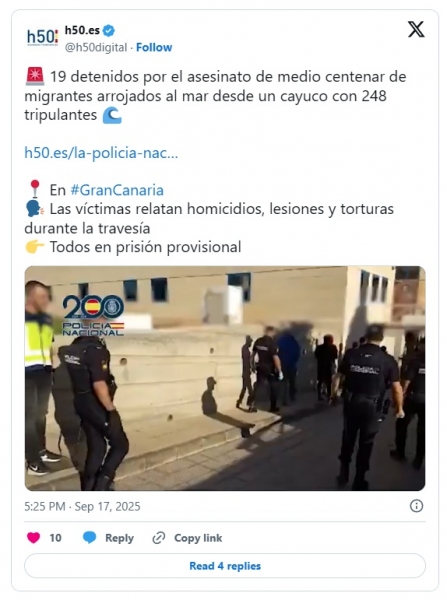 Na prenatrpani ladji iz Senegala na Kanarske otoke niso vrgli čez krov le 50 ljudi, ampak so bili zlorabljeni in ubiti tudi številni njihovi sopotniki. Španska policija je zdaj aretirala 19 osumljencev - vsi so "prosilci za azil", ki bi končali v španskih sprejemnih centrih, če zločini ne bi bili pravočasno odkriti.