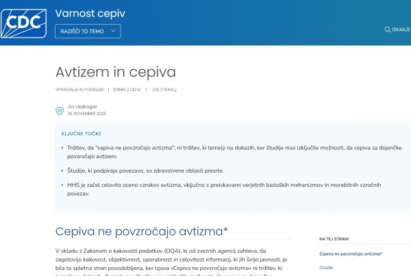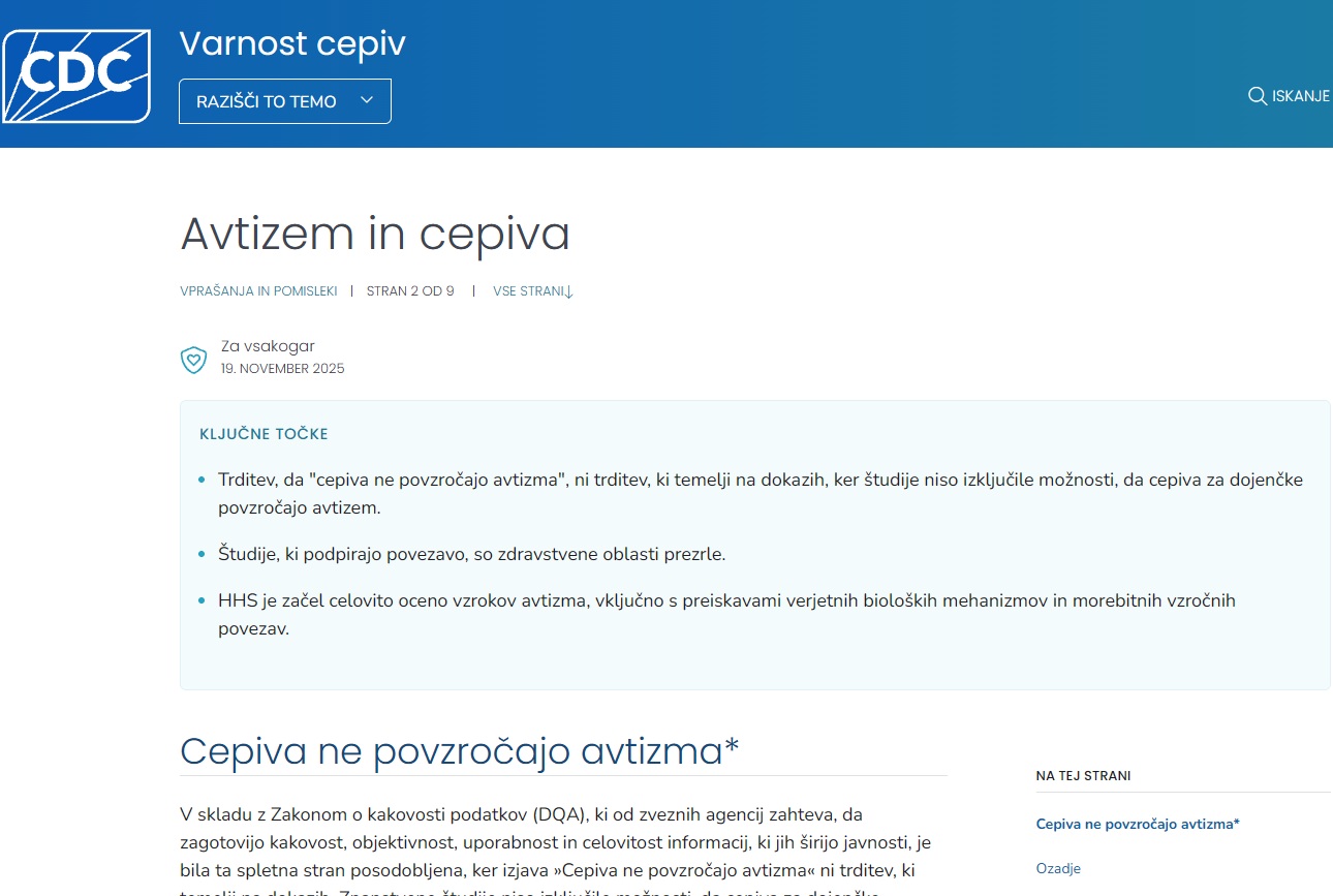 Do včeraj, 19. novembra 2025, je uradna spletna stran ameriških Cepiva ne povzročajo avtizma. To je bila mantra, ki so jo ponavljali zdravniki, znanstveniki in mediji po vsem svetu, domnevno na podlagi številnih študij, ki naj bi dokazale, da ni povezave med rutinskim cepljenjem otrok in povečanjem števila diagnoz avtizma.