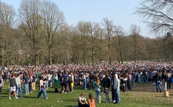 Na fotografijah in video posnetkih v družabnih omrežjih je videti veliko množic mladih, ki plešejo in zabavajo, toda tiskovna predstavnica policije Ilse Van de Keere je za tiskovno agencijo Belga povedala, da je policija začela čiščenje parka okoli 17. ure..."