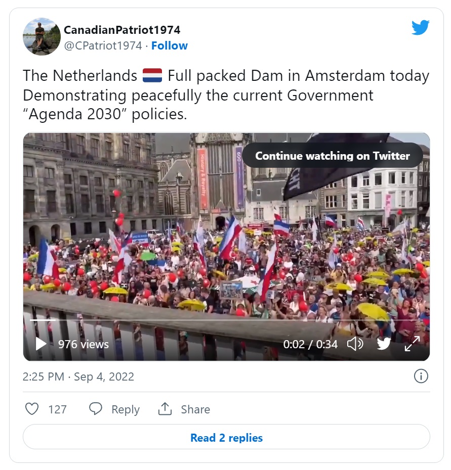 Zadnji protesti, ki so jih osrednji mediji poskušali prikriti, so potekali na ulicah Amsterdama, kjer je na tisoče upornih državljanov protestiralo proti vladni politiki, ki slepo sledi tej agendi.