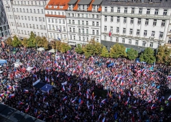 Več deset tisoč Čehov se je včeraj zbralo v Pragi, da bi protestirali proti vladnemu ravnanju z energetsko krizo ter članstvu države v Natu in Evropski uniji.