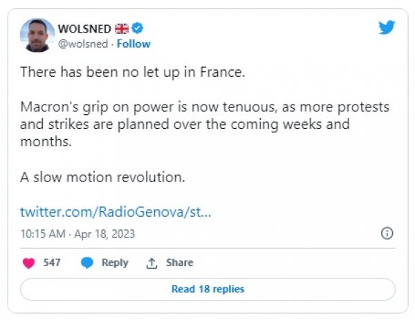 Po vsej državi ljudje, pogosto s podporo sindikatov, protestirajo proti kontroverzni pokojninski reformi, ki jo je brez podpore državnega zbora potisnil predsednik Macron. To je bil dodaten udarec, potem ko so Francozi že večkrat šli na ulice in udarili proti Macronovim načrtom in ukrepom (reimo protesti rumenih jopičev).