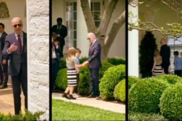 Posnetki, ki postajajo viralni po družbenih omrežjih, kažejo, da Joe Biden zvabi dva majhna otroka, da se mu pridružita, preden z njima izgine za zaprtimi vrati.