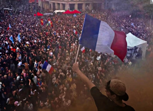 Kmalu po objavi preliminarnih rezultatov v nedeljo zvečer so na shodu Nove ljudske fronte v središču Pariza izbruhnili nemiri, ki so se jim kmalu pridružili Nantes, Lyon, Marseille in Rennes.